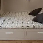 We stayed 4 nights; would come here again. Loved this lovely apartment. The bed was comfortable, a refrigerator, a dishwasher and ironing facilities were useful. A balcony was an advantage: D